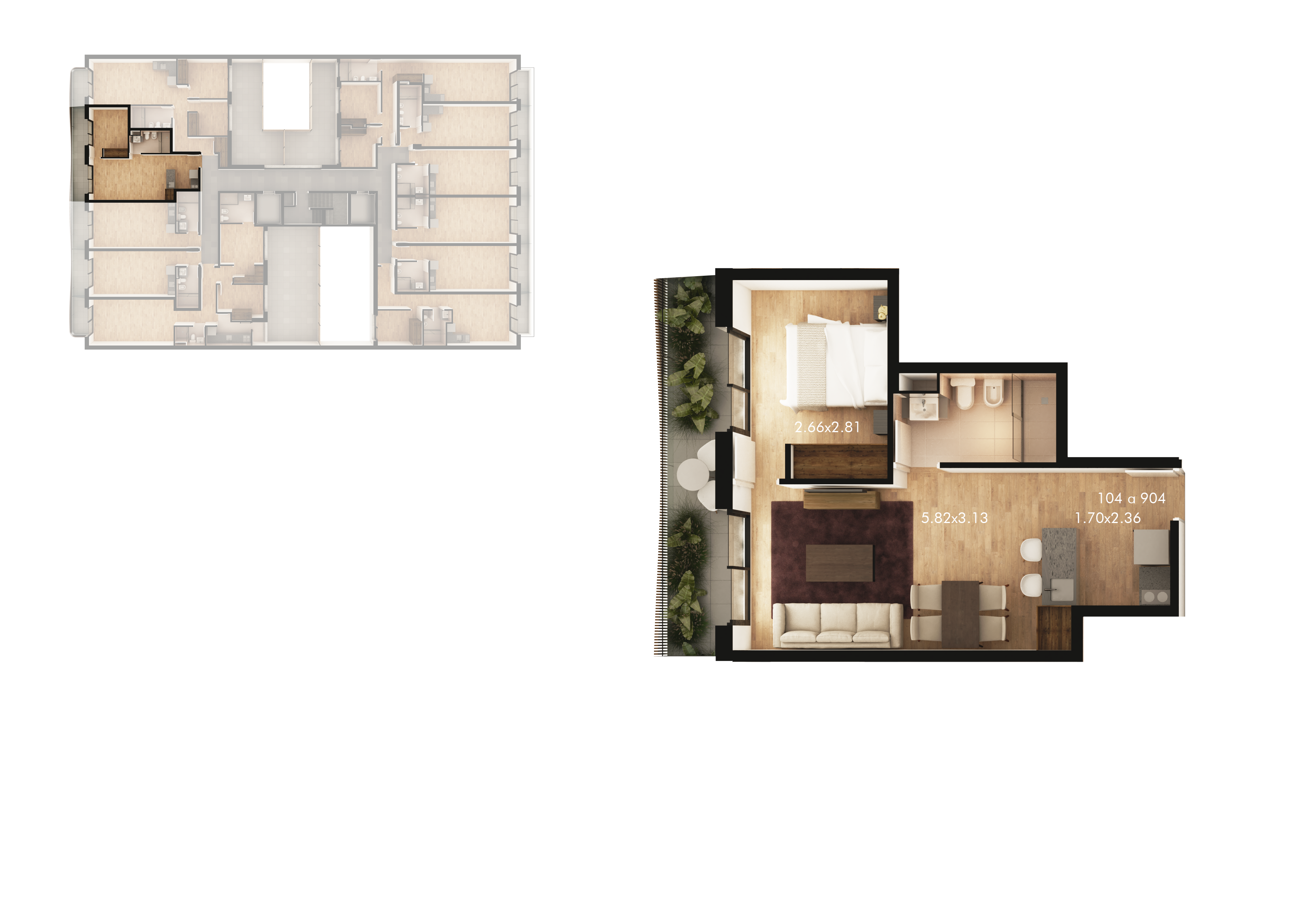 *PRECIO PUBLICADO CORRESPONDE A UNIDAD 904 AL FRENTE CON TERRAZA DE 8 M2.*